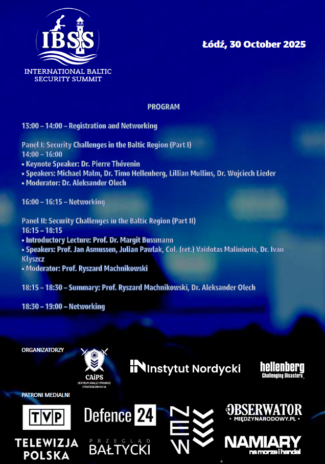 The International Baltic Security Summit in Łódź is an annual forum dedicated to the multidimensional security of the Baltic Sea region. Organized jointly by the Center for Strategic Analysis and Forecasts at the Faculty of International and Political Studies of the University of Łódź and the Nordic Institute Foundation, it brings together experts from Poland and abroad to engage in interdisciplinary debates on geopolitical, military, economic, and social issues. The goal of the summit is not only to identify potential threats but also to develop practical recommendations and new models of cooperation that strengthen the stability and resilience of the entire Baltic community.